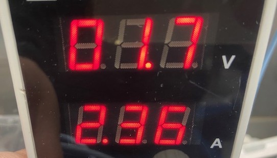 本体から基板のみを取り出し、直流電源を使用して通電チェックを行いました。